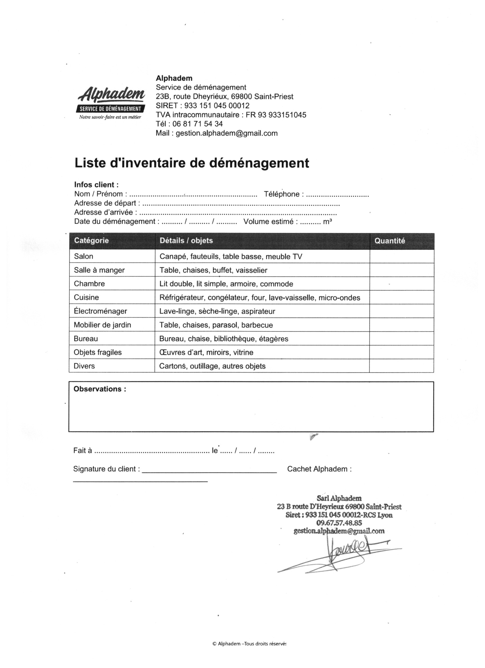 Pour établir un devis précis et adapté à vos besoins, merci de compléter notre formulaire d’inventaire.